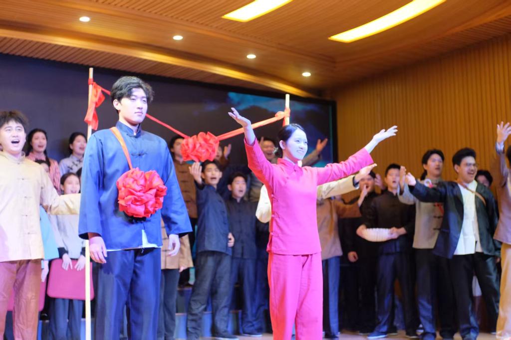 展演聚焦沂蒙烽火岁月,《东进!东进!》的激昂、《等着我亲爱的人》的缱绻、《封坛酒》的质朴等经典选段轮番上演,以多元声乐表达重现军民鱼水情深,将“水乳交融、生死与共”的沂蒙精神具象化、艺术化呈现。全程钢琴伴奏简约庄重,既凸显声乐艺术本真魅力,更让演员们的娴熟演唱技巧与饱满情感表达相得益彰。现场观众在旋律中重温红色历史、感悟初心使命,活动不仅是学生专业成果的集中检验,更是一堂沉浸式红色文化教育课——青年学子在演绎经典中深悟革命文化内核,实现专业技能与思想境界双重提升。
