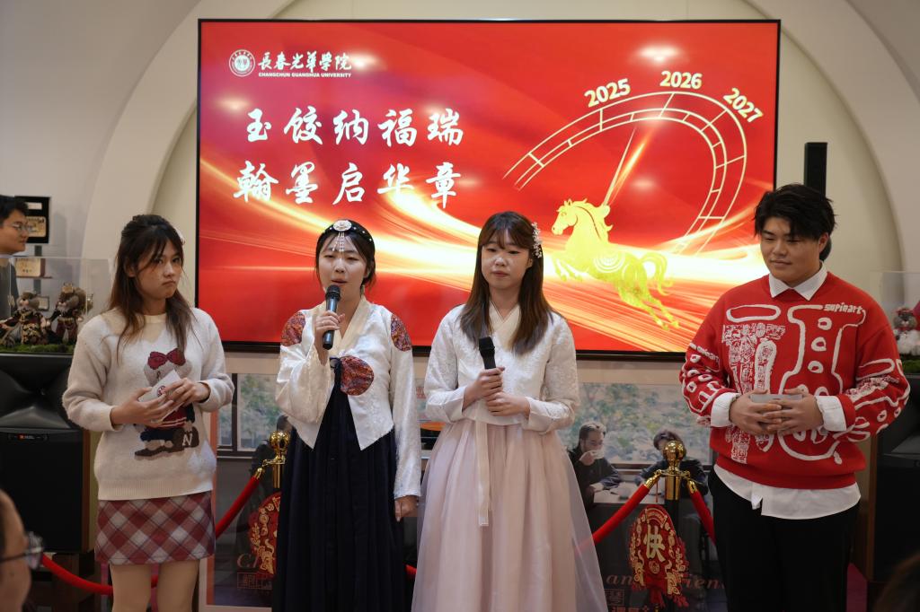 活动在温馨祥和的氛围中拉开序幕。多位影视明星和在校学子通过视频,为学校发展与沐味咖啡送上诚挚祝福;现代教育学院学子奏响悠扬笛声《春节序曲》,婉转旋律勾勒出新年的美好;维吾尔族同学献上翩跹民族舞,灵动舞步尽显多元文化的绚丽风采,瞬间点燃现场氛围。