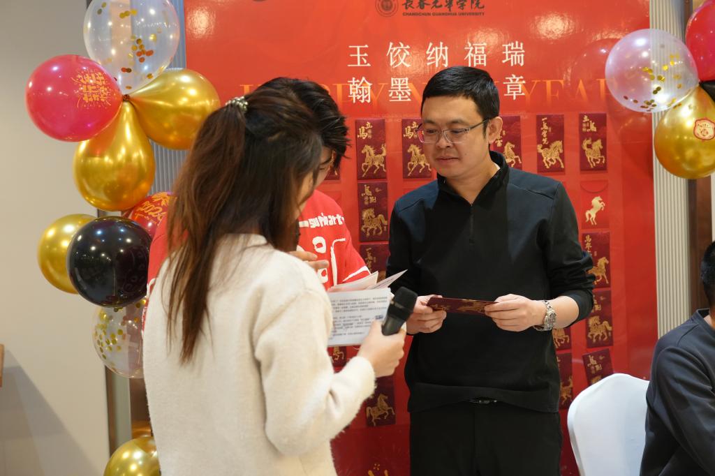 夜幕降临,热气腾腾的饺子陆续上桌,现场暖意更浓。来自维吾尔族、蒙古族、朝鲜族、东乡族、锡伯族等多个民族的学生代表轮番登场,分享家乡的新年习俗与特色美食,更有蒙古族的学生为在场老师们献上寄托着最美好祝愿的哈达,师生们围坐一桌,共品多元风味饺子与各民族特色佳肴,深切感受多民族交融共处的深厚情谊。活动尾声,现场颁发了 “创意饺子”“协作能手” 等特色奖项,幸运抽奖环节更是将氛围推向高潮,欢声笑语中,本次迎新年活动画上圆满句号。