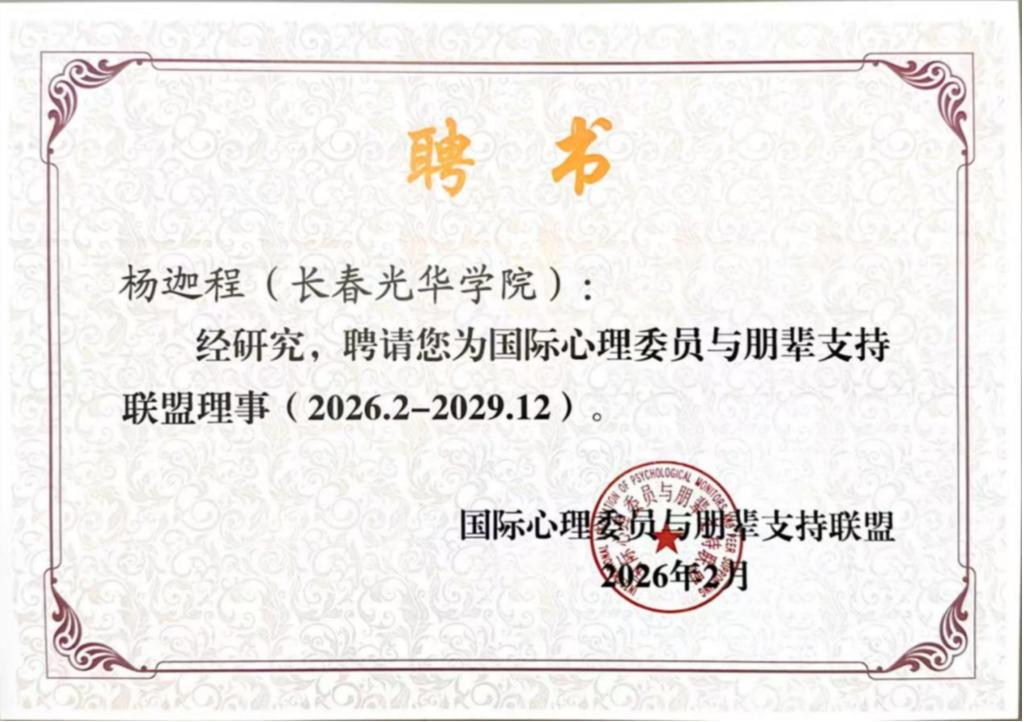 学校入选国际心理委员与朋辈支持联盟(IAPMPS)首批理事单位,心理中心教师杨迦程获聘该联盟首批理事。