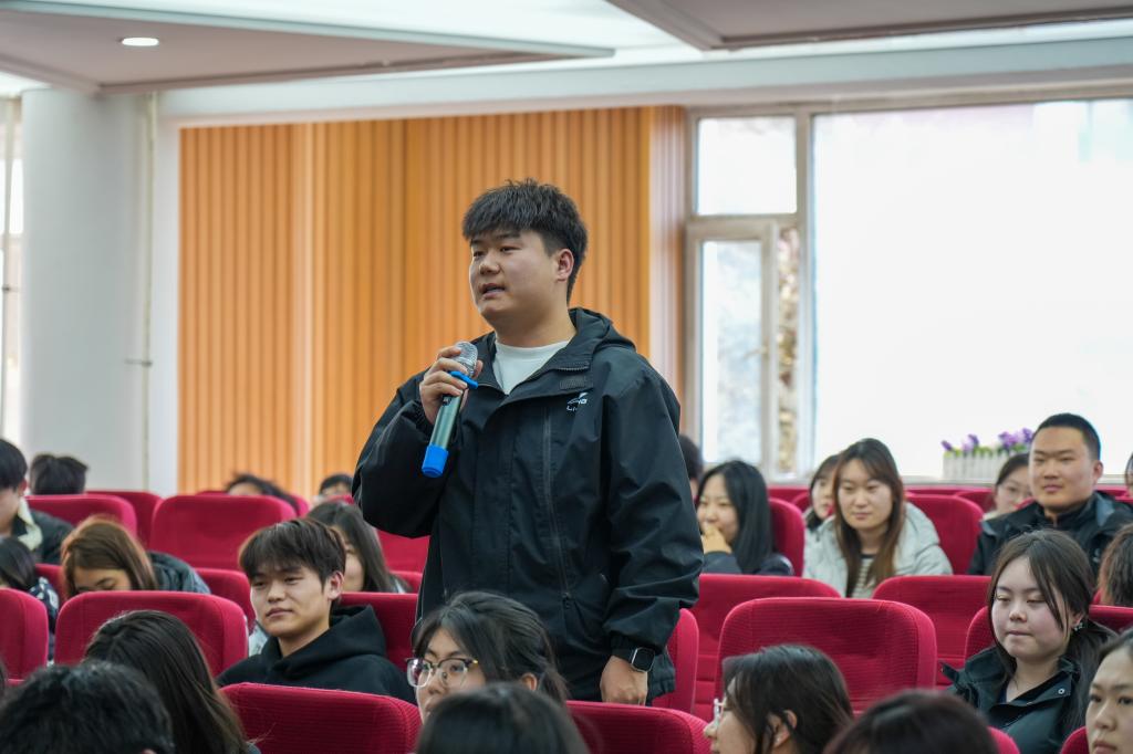 互动交流环节,同学们围绕专业学习规划、国企职场发展、HR数智化技能提升、求职就业准备等问题踊跃提问,田志伟校友结合自身经历逐一细致解答,给出针对性建议,现场交流氛围热烈融洽,有效帮助同学们明晰职业方向、化解成长困惑。