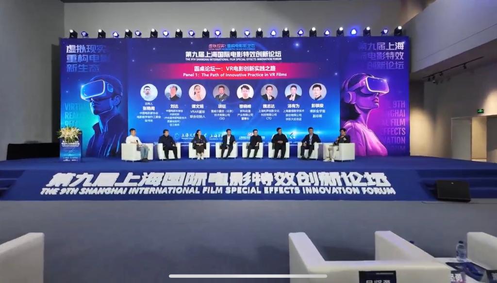 调研团队首站聚焦上海大学上海电影学院,正值第九届上海国际电影特效创新论坛暨2025“视听静界”VR影像展在此盛大举办之际,团队成员亲身沉浸于VR影像作品的互动体验中,深刻感受超高清技术与虚拟现实创新融合所带来的沉浸式观影革命。为未来的VR影像创制、虚拟制作、实时渲染、交互叙事等前沿领域的科研与教学注入强劲创新引擎。
