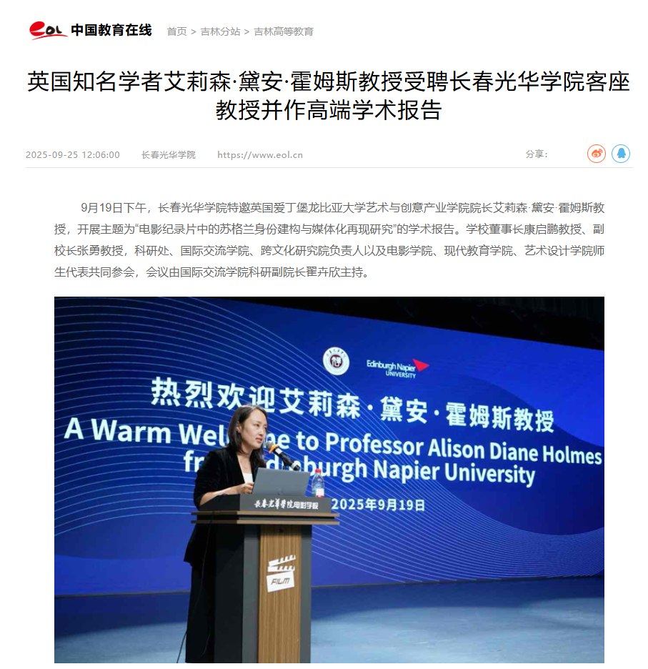中国教育在线|英国知名学者艾莉森·黛安·霍姆斯教授受聘长春光华学院客座教授并作高端学术报告