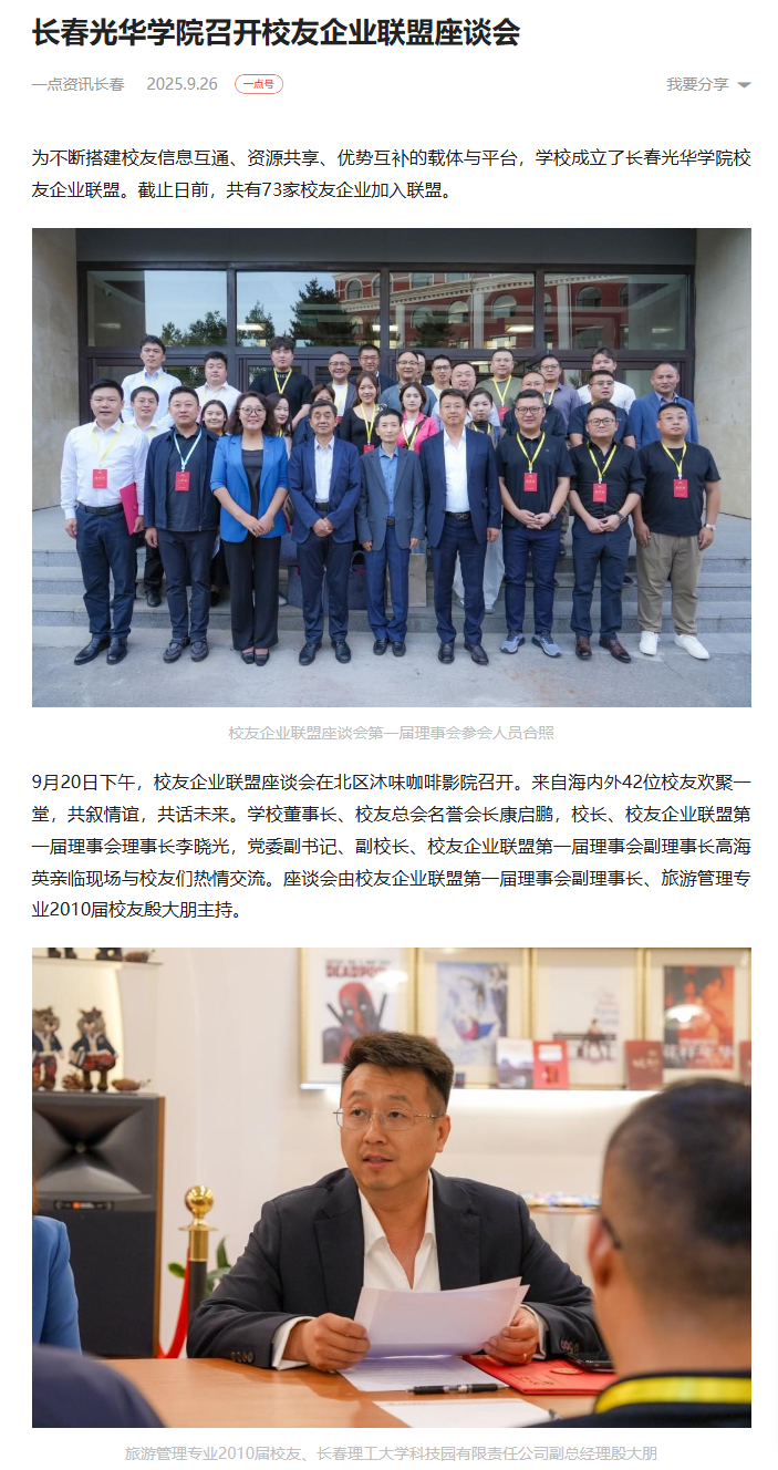 一点资讯|长春光华学院召开校友企业联盟座谈会